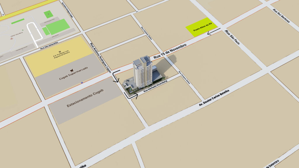 Fica logo após a Tapetes São Carlos (para quem vai pela Carlos Botelho rumo ao Centro, à direita. Já para quem vai pela Carlos Botelho para a Vila Nery, na esquina da Cogeb à esquerda. São menos de 50 metros da Escola Luís Augusto de Oliveira, e cerca de 100 metros do Campo do Rui. Além disso, ainda fica próximo do Hospital da Unimed e da Praça Brasil.